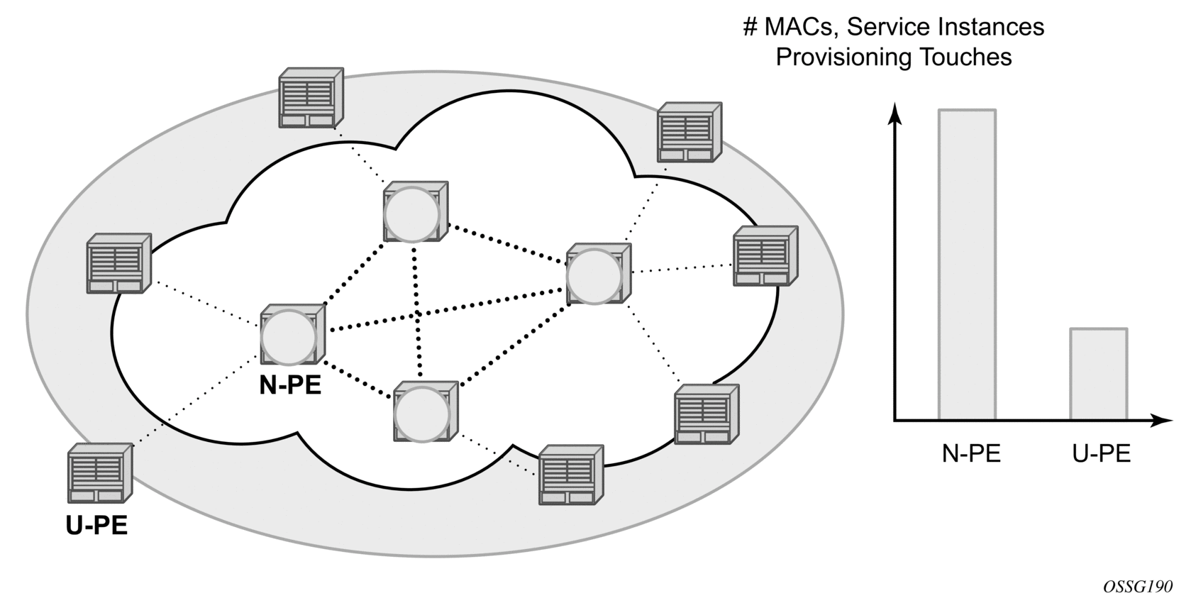 In a large VPLS deployment, it is important to improve the stability of the overall solution and to speed up service delivery. These goals are achieved by reducing the load on the N-PEs and respectively minimizing the number of provisioning touches on the N-PEs.