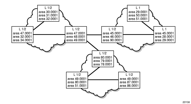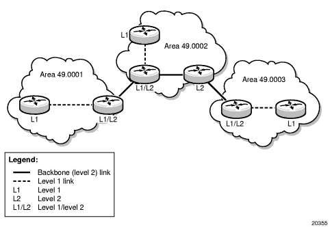 IS-IS uses a two-level hierarchy when dividing an AS into smaller areas. A system logically belongs to one area. Level 1 routing is performed within an area. Level 2 routing is performed between areas. A 7705 SAR can be configured as a level 1 router, level 2 router, or level 1/2 router.