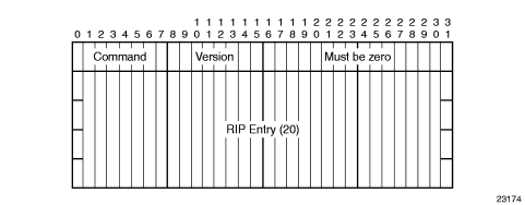 There can be 1 to 25 route entries. The RIP packet header format is displayed in Figure 16. Figure 17 and Figure 18 display the RIPv1 and RIPv2 packet formats.