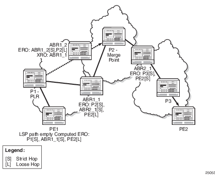 | Note: If node protection FRR is enabled but the MP does not support an unnumbered interface, the PATH message is rejected at the MP and the path is torn down. |
