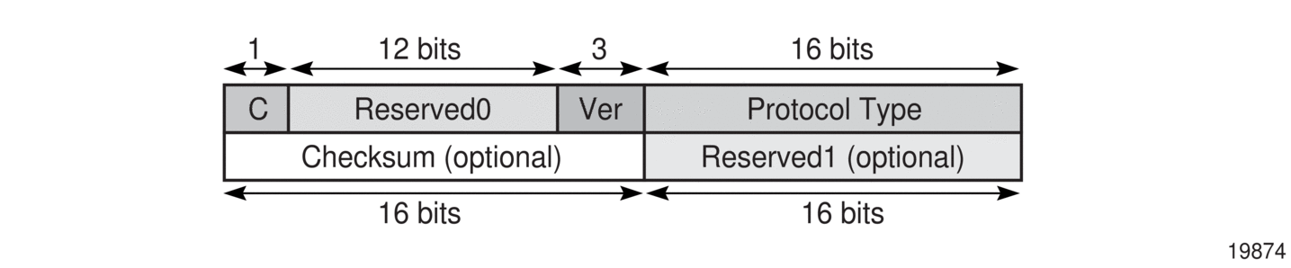 The GRE header format is shown in Figure 8 and described in Table 4.