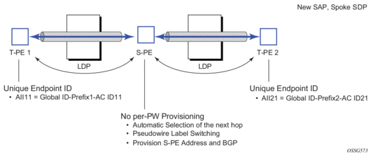 The pseudowire template concept used for BGP AD is re-used for BGP VPWS to dynamically instantiate pseudowires (SDP-bindings) and the related SDPs (provisioned or automatically instantiated).