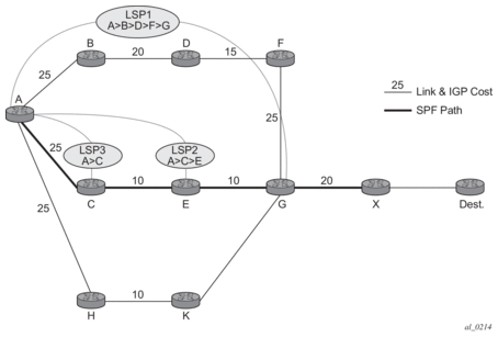 The SR OS supports the synchronization of an IGP and LDP based on a solution described in RFC 5443, which consists of setting the cost of a restored link to infinity to give both the IGP and LDP time to converge. When a link is restored after a failure, the IGP sets the link cost to infinity and advertises it. The actual value advertised in OSPF is 0xFFFF (65535). The actual value advertised in an IS-IS regular metric is 0x3F (63) and in IS-IS wide-metric is 0xFFFFFE (16777214). This synchronization feature is not supported on RIP interfaces.