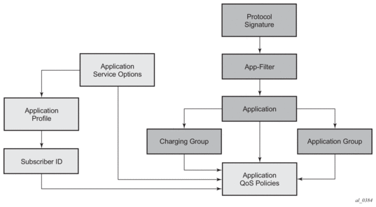 Application Assurance enables per AA subscriber (a residential subscriber, or a Layer 2/Layer 3 SAP or spoke SDP), per application policy for all or a subset of AA subscriber's applications. This provides the ability to: