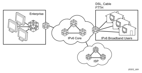 The -TiMOS implements IP routing functionality, providing support for IP version 4 (IPv4) and IP version 6 (IPv6). IP version 6 (RFC 1883, Internet Protocol, Version 6 (IPv6)) is a version of the Internet Protocol designed as a successor to IP version 4 (IPv4) (RFC-791, Internet Protocol). The changes from IPv4 to IPv6 affect the following categories: