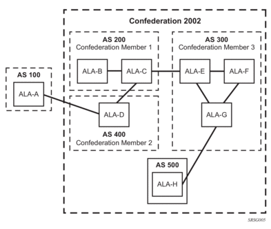 There are no default confederations. Router confederations must be explicitly created. Figure 2 shows an example of a confederation configuration.