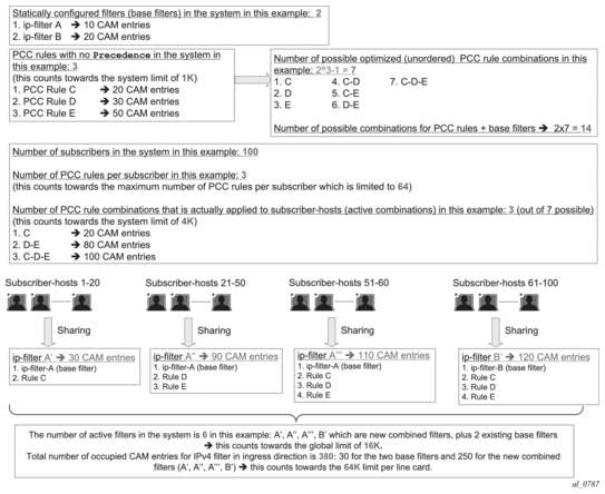 Gx flows are similar to dynamically created filter or ip-criteria (QoS) entries and are inserted within the entry range configured for the base filter/qos-policy.
