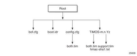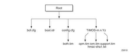 Figure 8 displays the compact flash directory structure and file names for the 1-slot and 1-slot non-redundant models (the non-redundant models apply to the 7750 SR only).