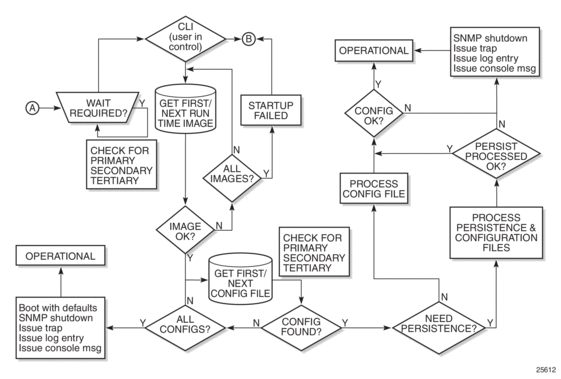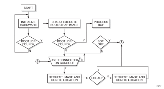 Figure 10 displays the process start your system. Note that this example assumes that the boot loader and BOF image and configuration files are successfully located.