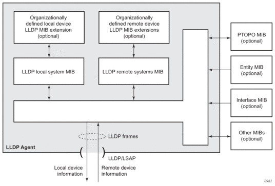 The IEEE 802.1ab Link Layer Discovery Protocol (LLDP) is a unidirectional protocol that uses the MAC layer to transmit specific information related to the capabilities and status of the local device. Separately from the transmit direction, the LLDP agent can also receive the same kind of information for a remote device which is stored in the related MIBs.