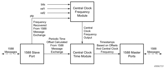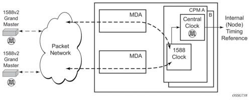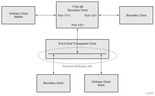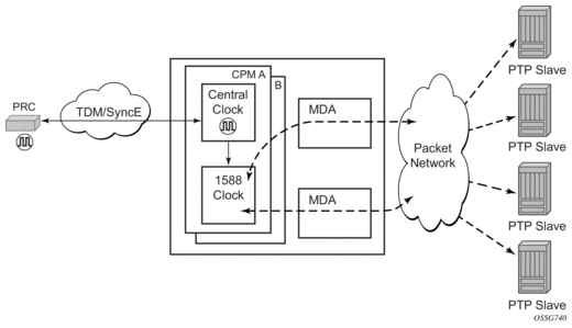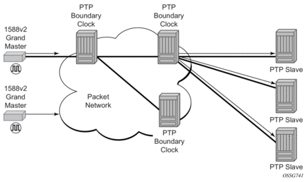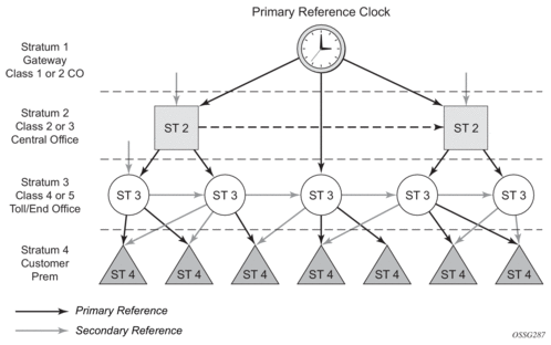 SR OS routers will normally operate as a stratum-2 or higher device. The router relies on an external stratum-1 server to source accurate time into the network. However, SR OS also allows for the use of the local PTP recovered time to be sourced into NTP. In this latter case, the local PTP source appears as a stratum-0 server and SR OS advertises itself as a stratum-1 server. Activation of the PTP source into NTP may impact the network NTP topology because the SR OS router will be promoted to stratum 1.