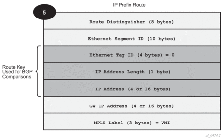 | Note: VPN-IPv4 routes can be tagged at ingress and that tag is preserved throughout the RTM and EVPN processing, so that the tag can be matched at the egress BGP routing policy. |
