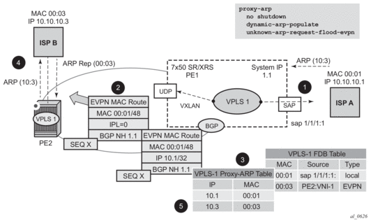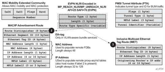 EVPN defines a mechanism to allow the smooth mobility of MAC addresses from an NVE to another NVE. The 7750 SR, 7450 ESS, and 7950 XRS support this procedure as well as the MAC-mobility extended community in MAC advertisement routes as follows: