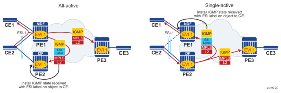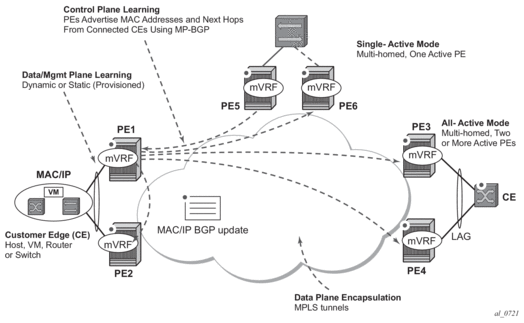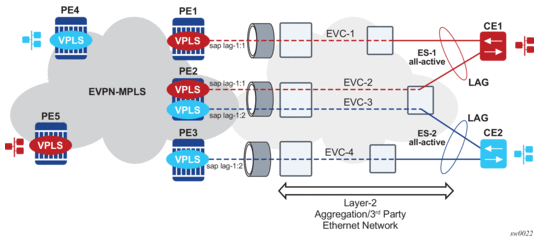 EVPN-MPLS is standardized in RFC 7432 as an L2VPN technology that can fill the gaps in VPLS for E-LAN services. A significant number of service providers offering E-LAN services today are requesting EVPN for their multi-homing capabilities, as well as the optimization EVPN provides. EVPN supports all-active multi-homing (per-flow load-balancing multi-homing) as well as single-active multi-homing (per-service load-balancing multi-homing).