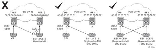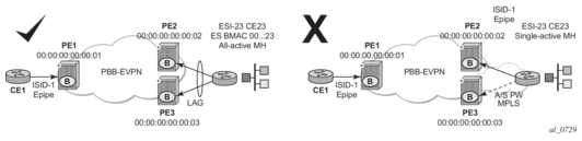 The SR OS PBB-EVPN implementation supports PBB-EVPN for I-VPLS and PBB-Epipe services, including single-active and all-active multi-homing.