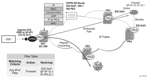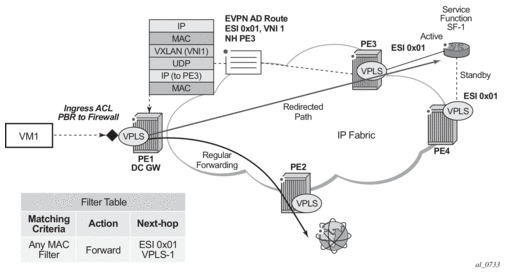 The same considerations for ES and AD routes, and DF election apply for all-active multi-homing as for single-active multi-homing; the difference is in the behavior on the NDF DC GW. The NDF for a specified service performs the following tasks.