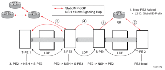 The BGP signaling mechanism used to establish the pseudowires is described in the BGP VPWS standards with the following differences: