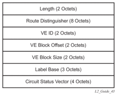 The BGP VPWS NLRI is based on that defined for BGP VPLS, but is extended with a circuit status vector, as shown in Figure 45.