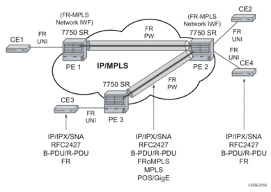The endpoints of Fpipes must be Data-Link Connection Identifiers (DLCIs) on any port that supports Frame Relay. The pseudowire encapsulation, or SDP vc-type, supported is the 1-to-1 Frame Relay encapsulation mode.