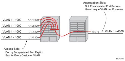 While different encapsulation types can be used, encapsulation mismatching can occur if the encapsulation behavior is not understood by connecting devices, which are unable to send and receive the expected traffic. For example, if the encapsulation type on one side of the Epipe is dot1q and the other is null, tagged traffic received on the null SAP will be double-tagged when it is transmitted out of the dot1q SAP.