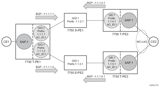 The pseudowire template concept used for BGP AD is re-used for BGP VPWS to dynamically instantiate pseudowires (SDP-bindings) and the related SDPs (provisioned or automatically instantiated).