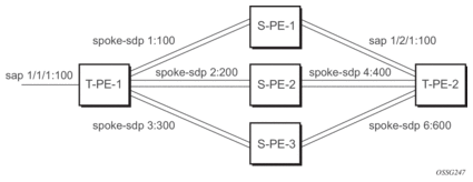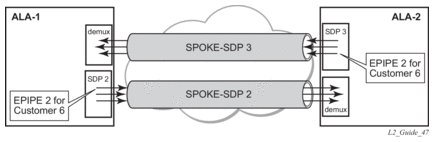 A spoke-SDP is treated like the equivalent of a traditional bridge “port”, where flooded traffic received on the spoke-SDP is replicated on all other “ports” (other spoke and mesh SDPs or SAPs) and not transmitted on the port it was received.