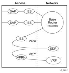 IP interfaces defined within the context of an IES service must have a SAP associated as the uplink access point to the subscriber network. Multiple IES services are created to segregate subscriber-owned IP interfaces.