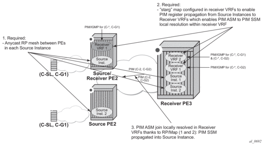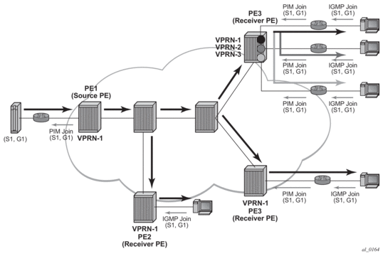 This feature allows multicast services to use segmented protocols and span them over multiple autonomous systems (ASs), as done in unicast services. As IP VPN or GRT services span multiple IGP areas or multiple ASs, either due to a network designed to deal with scale or as result of commercial acquisitions, operators may require Inter-AS VPN (unicast) connectivity. For example, an Inter-AS VPN can break the IGP, MPLS and BGP protocols into access segments and core segments, allowing higher scaling of protocols by segmenting them into their own islands. SR OS also allows for similar provision of multicast services and for spanning these services over multiple IGP areas or multiple ASs.