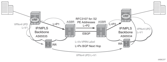 The SR OS implementation was designed also to interoperate with older routers Inter-AS implementations that do not comply with the RFC 5384 and RFC 5496.