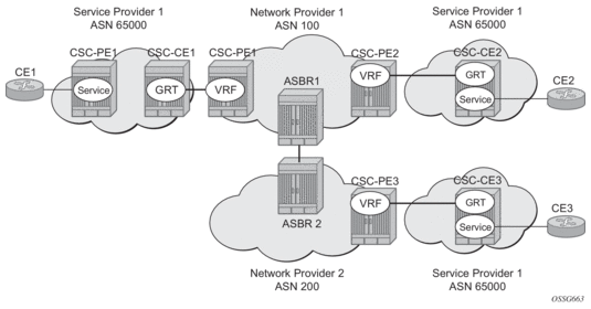 The SR OS implementation was designed to inter-operate with Cisco routers Inter-AS implementations that do not comply with the RFC5384 and RFC5496.