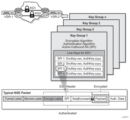 NGE allows a tiered approach to managing encryption keys in a network using key groups by configuring services, or router interfaces to use specific key groups depending on security policies for the service and network topology.