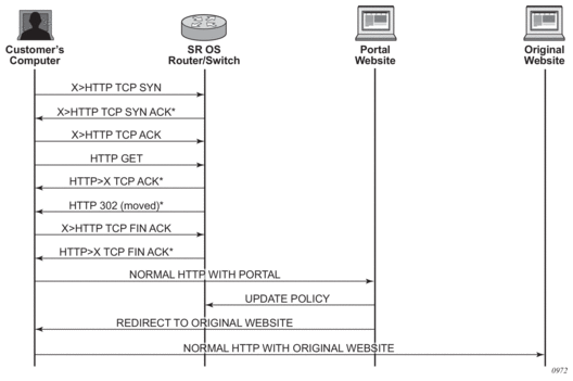 Figure 34 shows an example to configure policy-based forwarding for deep packet inspection on a VPLS service. For information about configuring services, refer to the 7450 ESS, 7750 SR, 7950 XRS, and VSR Layer 2 Services and EVPN Guide: VLL, VPLS, PBB, and EVPN.