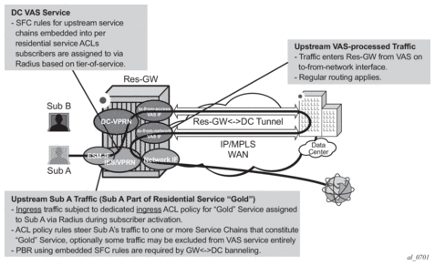 downstream traffic destined for subscribers after VAS processing must arrive on this interface, so that the traffic is subject to regular routing but is not subject to Application Assurance diversion, nor to egress subscriber PBR