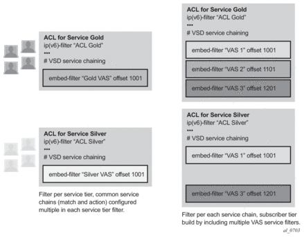 Achieve isolation of VAS steering from other ACL functions like security through the use of embedded filters