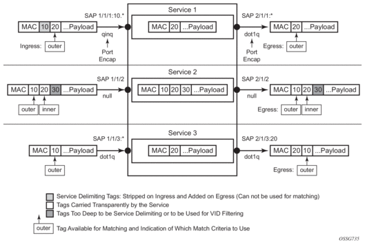 inner-tag/outer-tag — The filter searches to match Ethernet frames with the non-service delimiting tags, as described in the