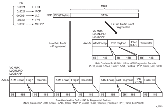 For ATM in the last mile, the LNS accounts for the following per fragment overhead: