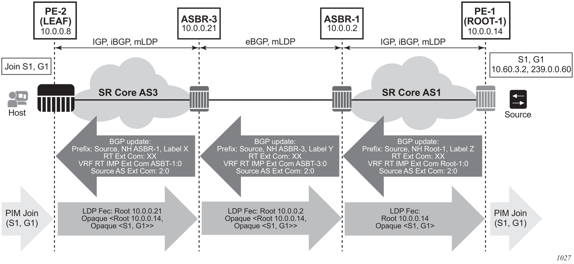 ASBR3 FEC {Root = ASBR1, Opaque Value = {Root: Root-1, Opaque Value: (S1, G1)}}