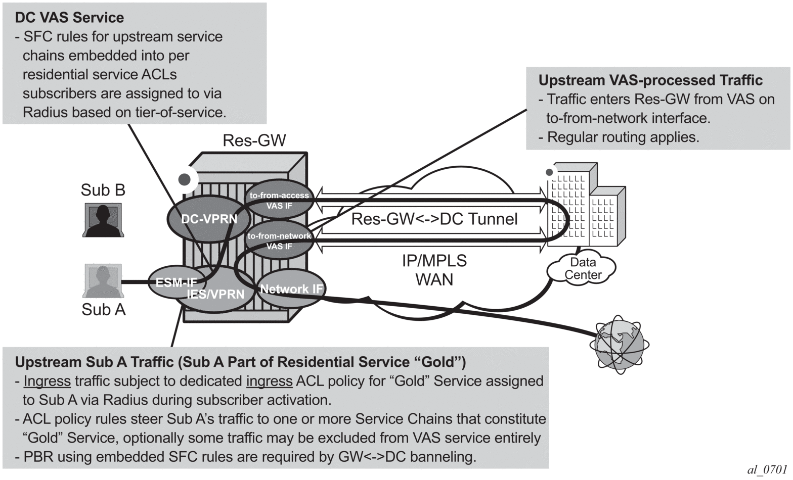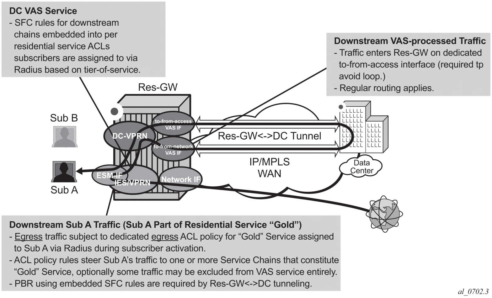 downstream traffic destined for subscribers after VAS processing must arrive on this interface, so that the traffic is subject to regular routing but is not subject to Application Assurance diversion, nor to egress subscriber PBR