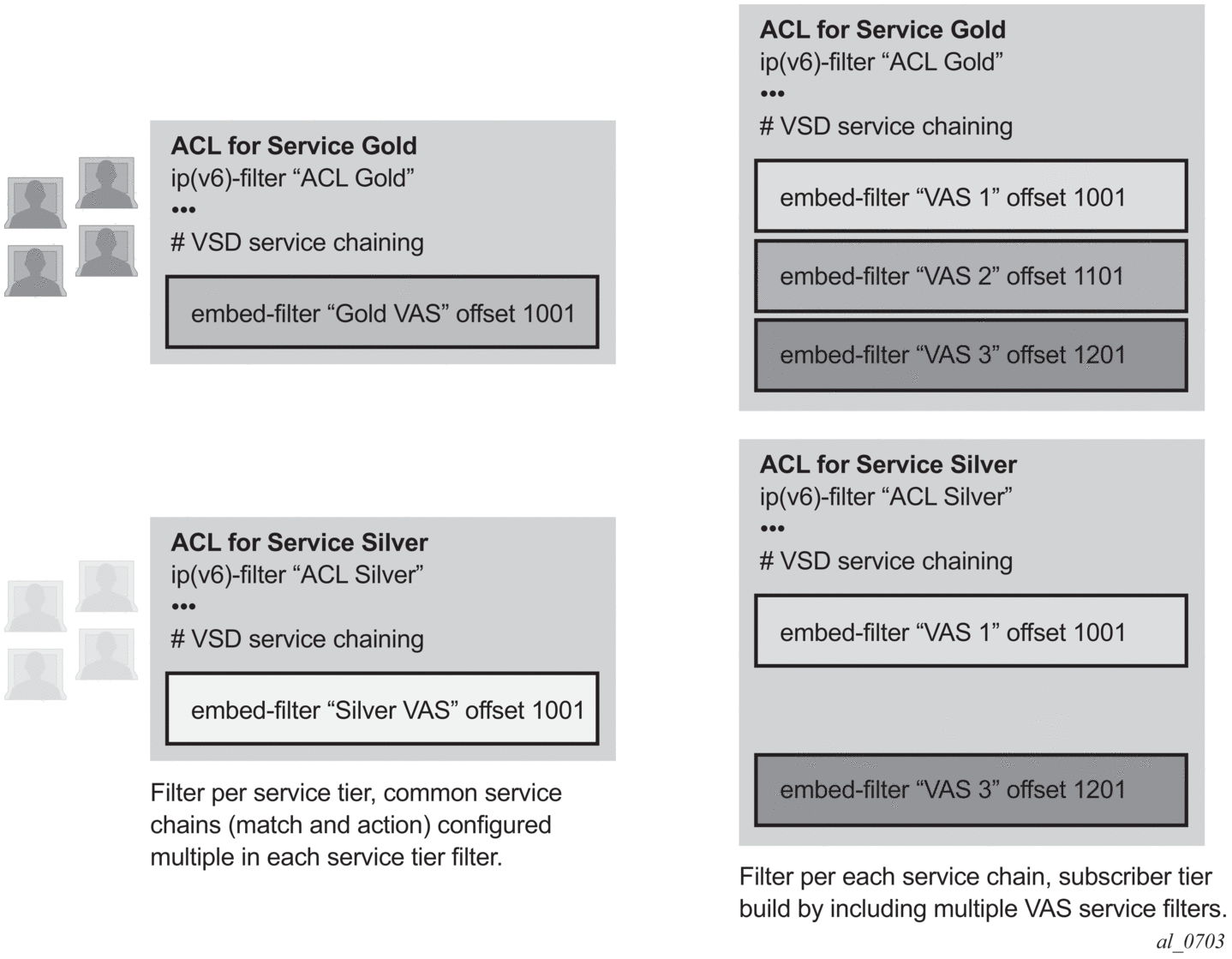 Achieve isolation of VAS steering from other ACL functions like security through the use of embedded filters