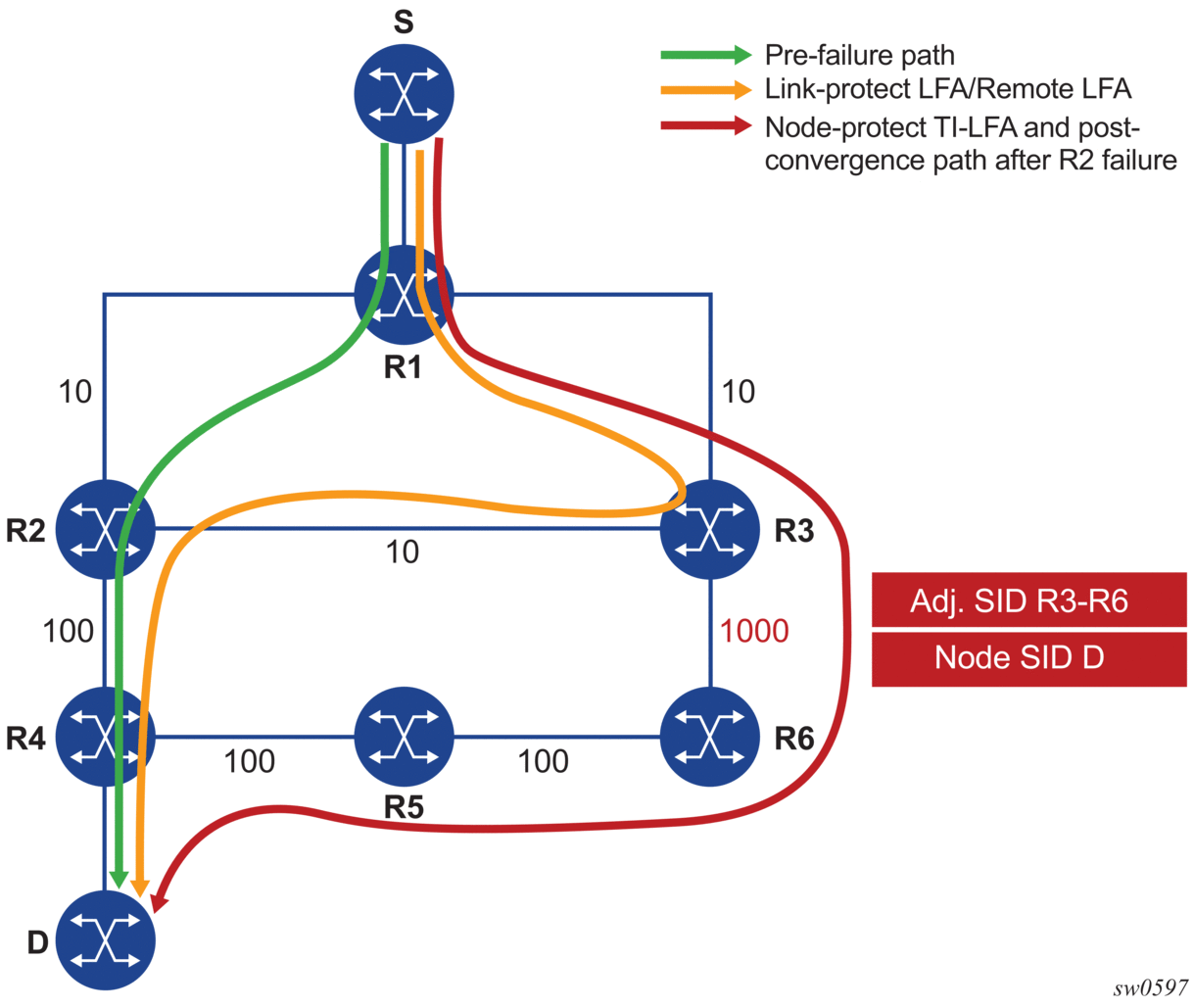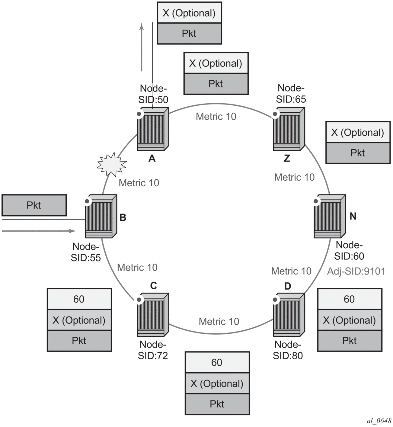 The SR OS micro-loop avoidance algorithm consists of the following rules and steps performed by the router: