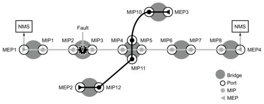 If the MEP is a down MEP, SMGR performs the fault handling actions for the affected service(s). Local actions done by the SMGR include (but are not limited to):