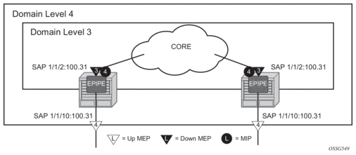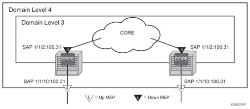 For IES and VPRN services, only down MEP is supported on Ethernet SAPs and spoke SDP bindings.