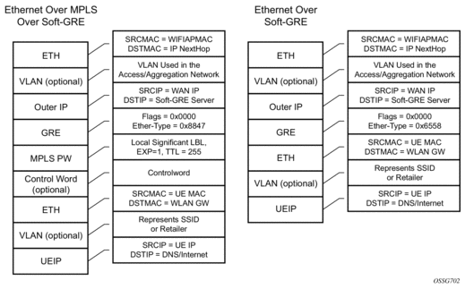 Soft-GRE refers to stateless GRE tunneling, whereby the AP forwards GRE encapsulated traffic to the WLAN-GW, and the GW reflects the encapsulation in the downstream traffic towards the AP. WLAN-GW does not require any per-AP end-point IP address configuration. The WLAN-GW learns the encapsulation as part of creating the subscriber state on processing the encapsulated control and data traffic. Following are some of the advantages of soft-GRE: