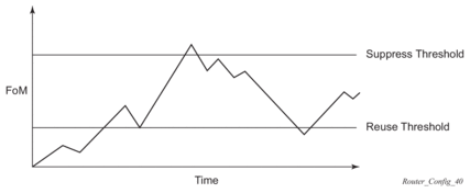 A route can be suppressed according to the Figure of Merit (FoM) value. The FoM is a value that is added to a route each time it flaps. A new route begins with an FoM value of 0.