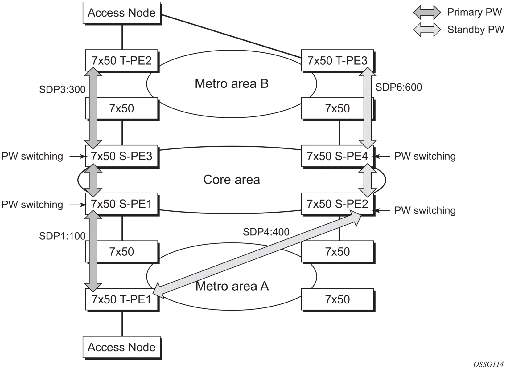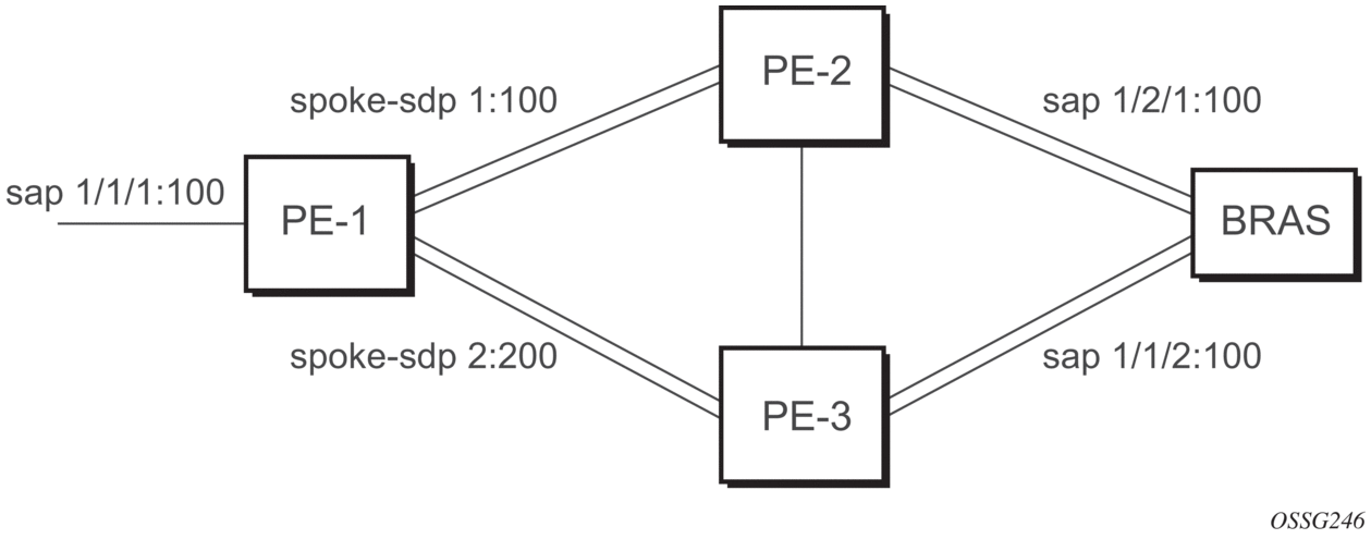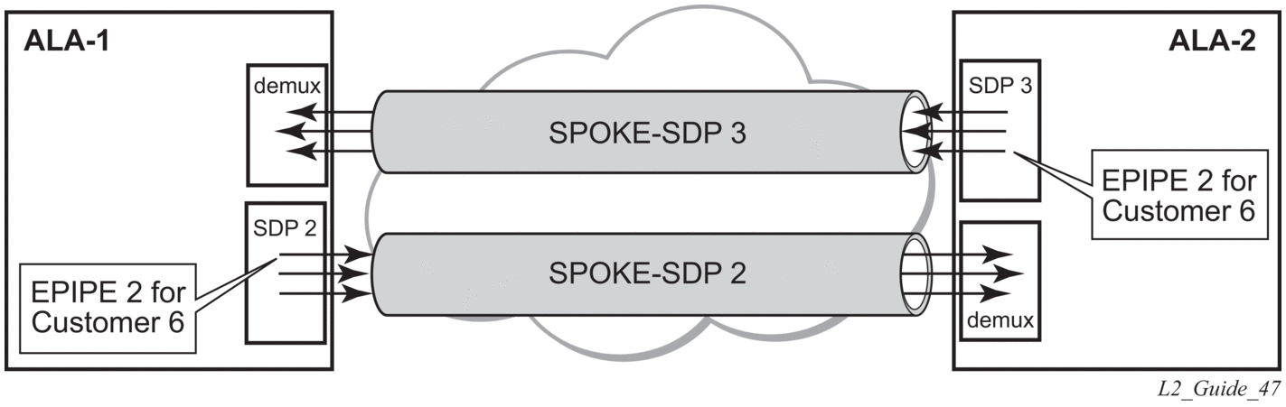 A spoke-SDP is treated like the equivalent of a traditional bridge “port”, where flooded traffic received on the spoke-SDP is replicated on all other “ports” (other spoke and mesh SDPs or SAPs) and not transmitted on the port it was received.