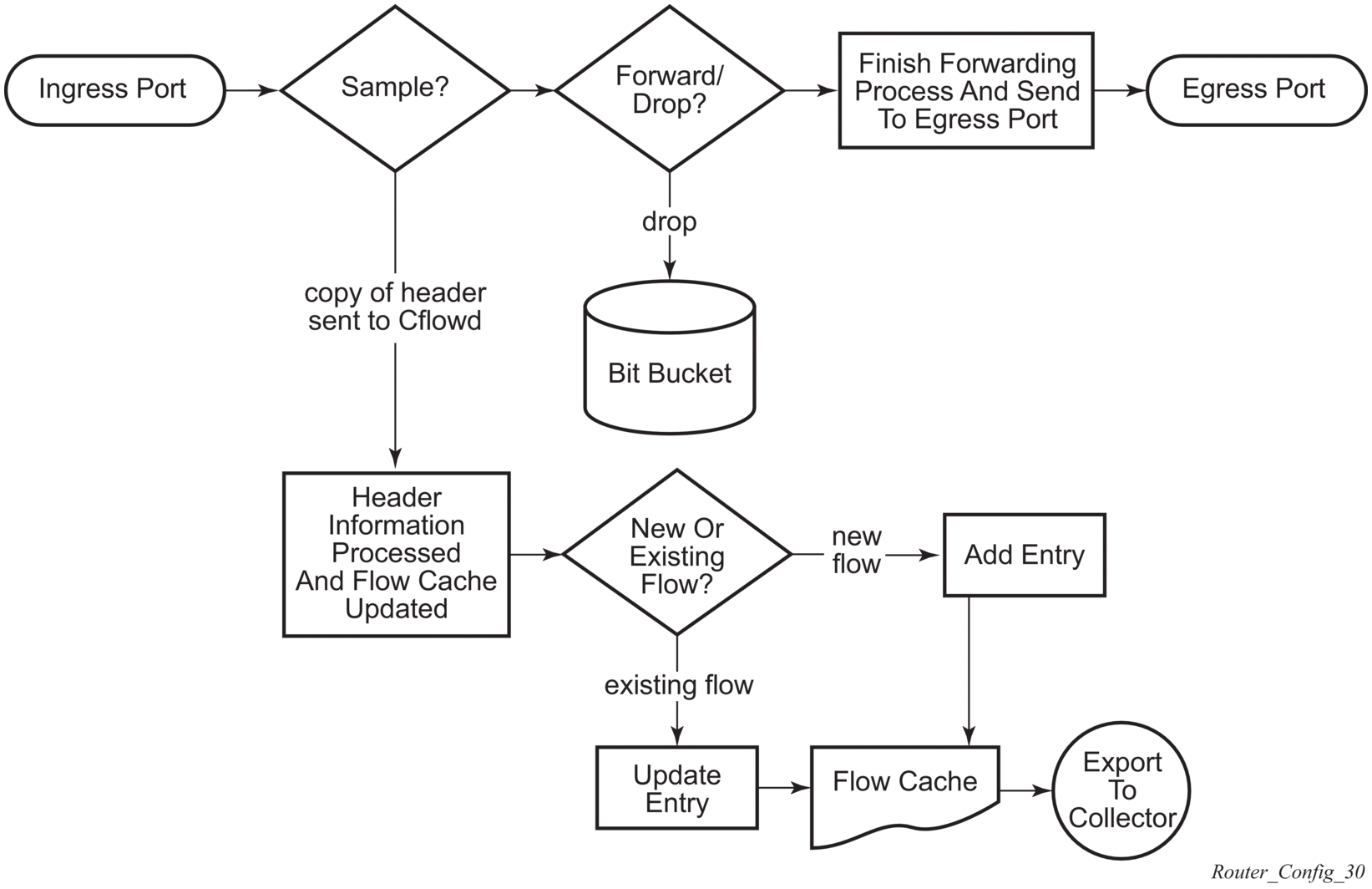 Figure 34 shows the basic operation of the cflowd feature. This sample flow is only used to describe the basic steps that are performed. It is not intended to specify implementation.