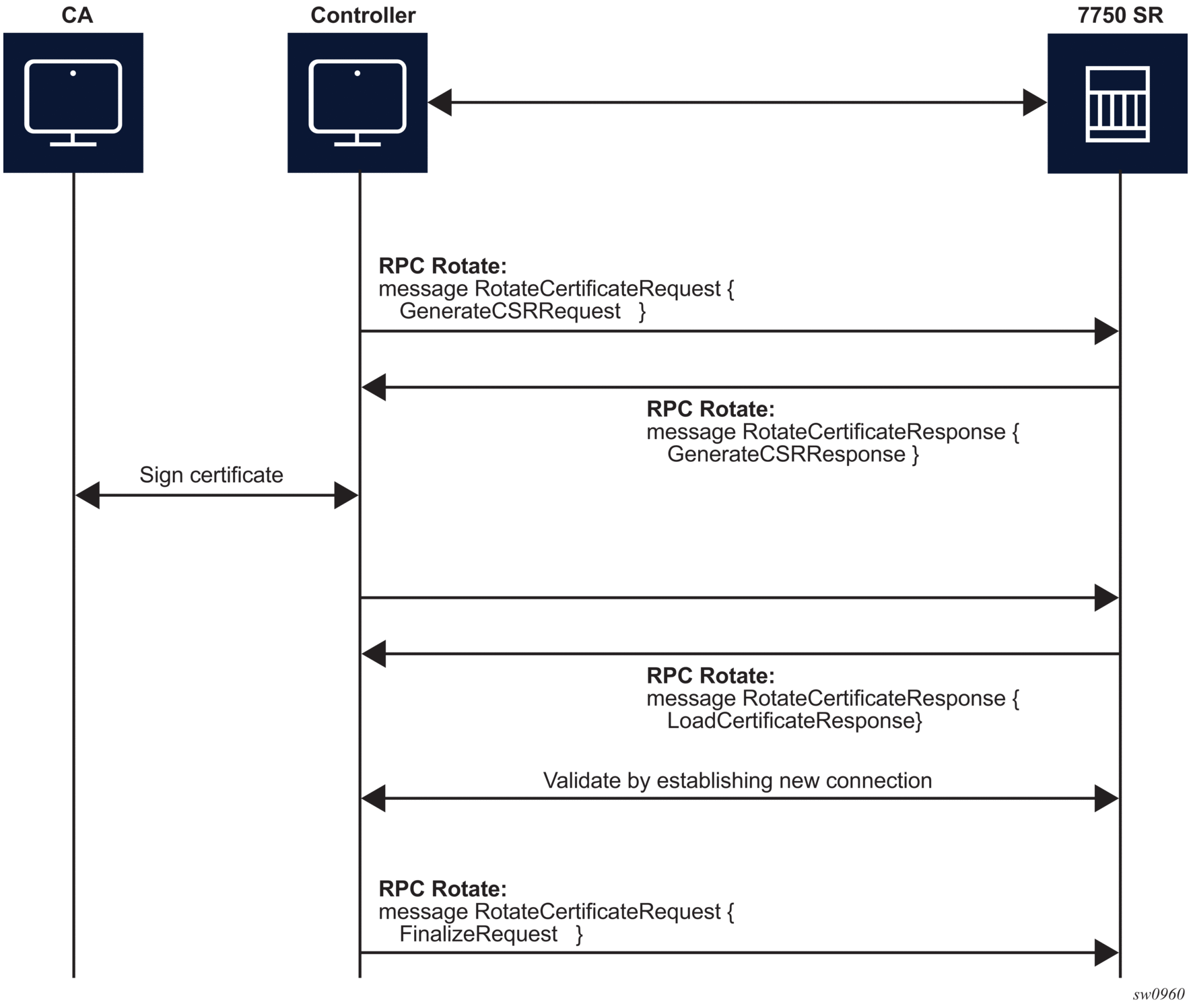 The controller is responsible for verifying the connection with the new certificate (Step 4 in Figure 28 and Figure 29); SR OS treats this as an optional step.
