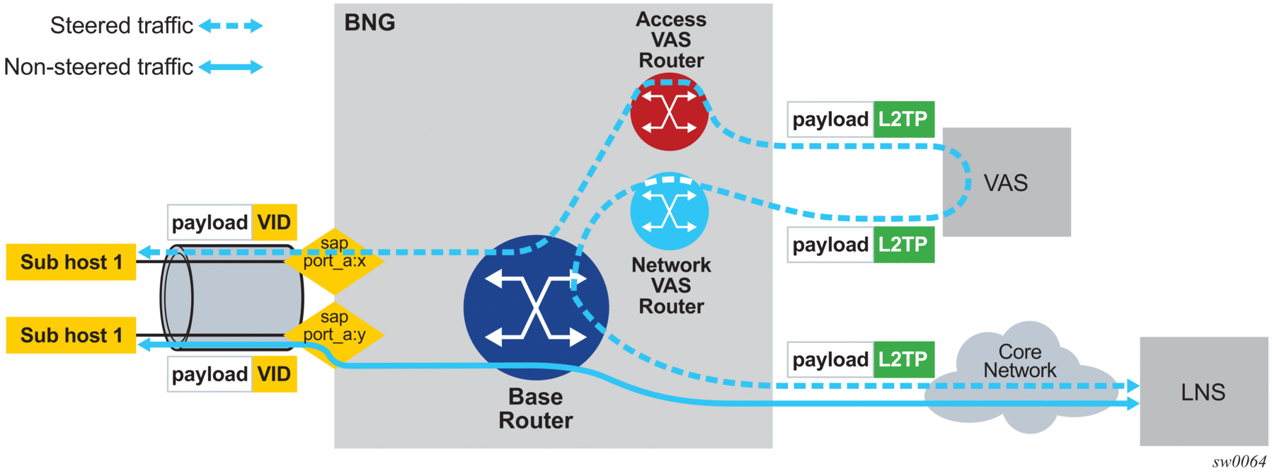 Traffic steering on L2TP LAC allows wholesale providers to forward L2TP-encapsulated packets going to and coming from LNS to Value-Added Services (VAS).