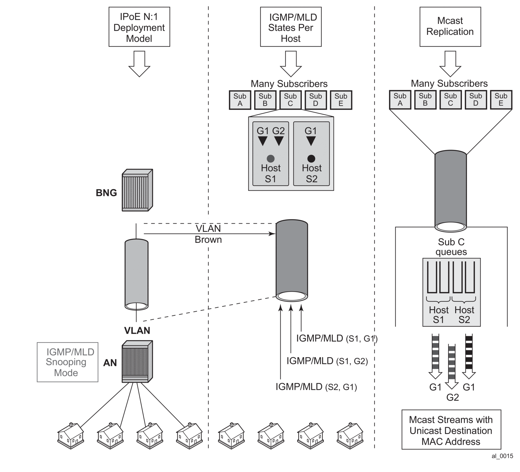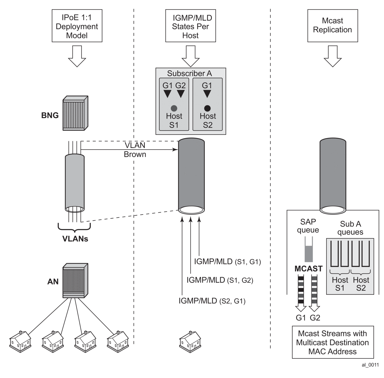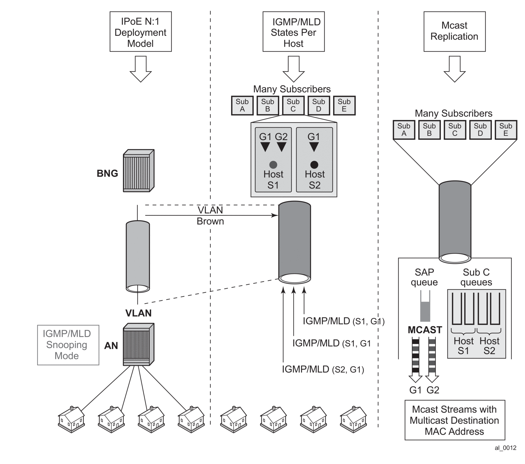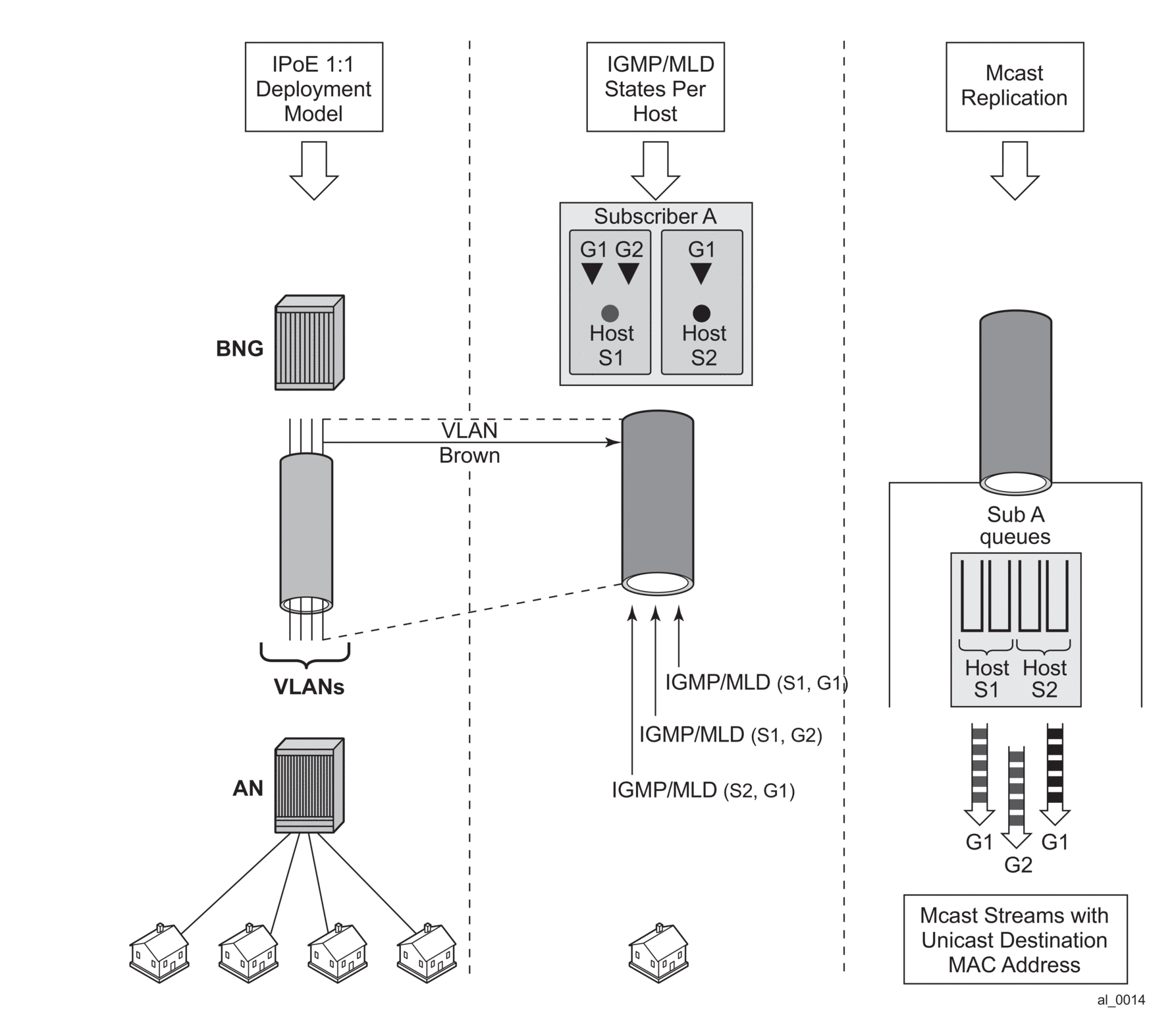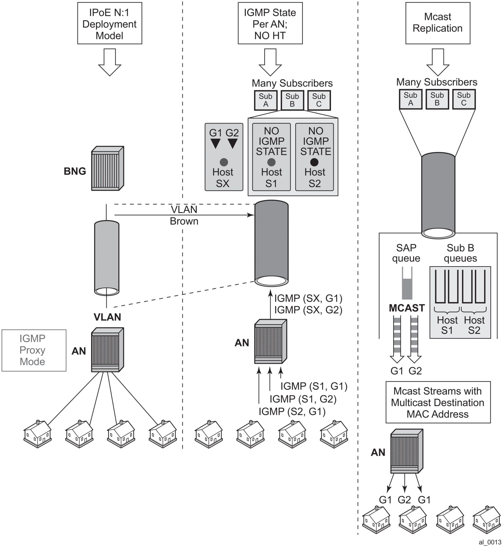 When HT is enabled, the AN forks off (duplicates) the IGMP messages on the common mcast SAP to the subscriber SAP. IGMP states are not fully maintained per sub-host in the BNG, instead they are only tracked (less overhead) for bandwidth adjustment purposes.