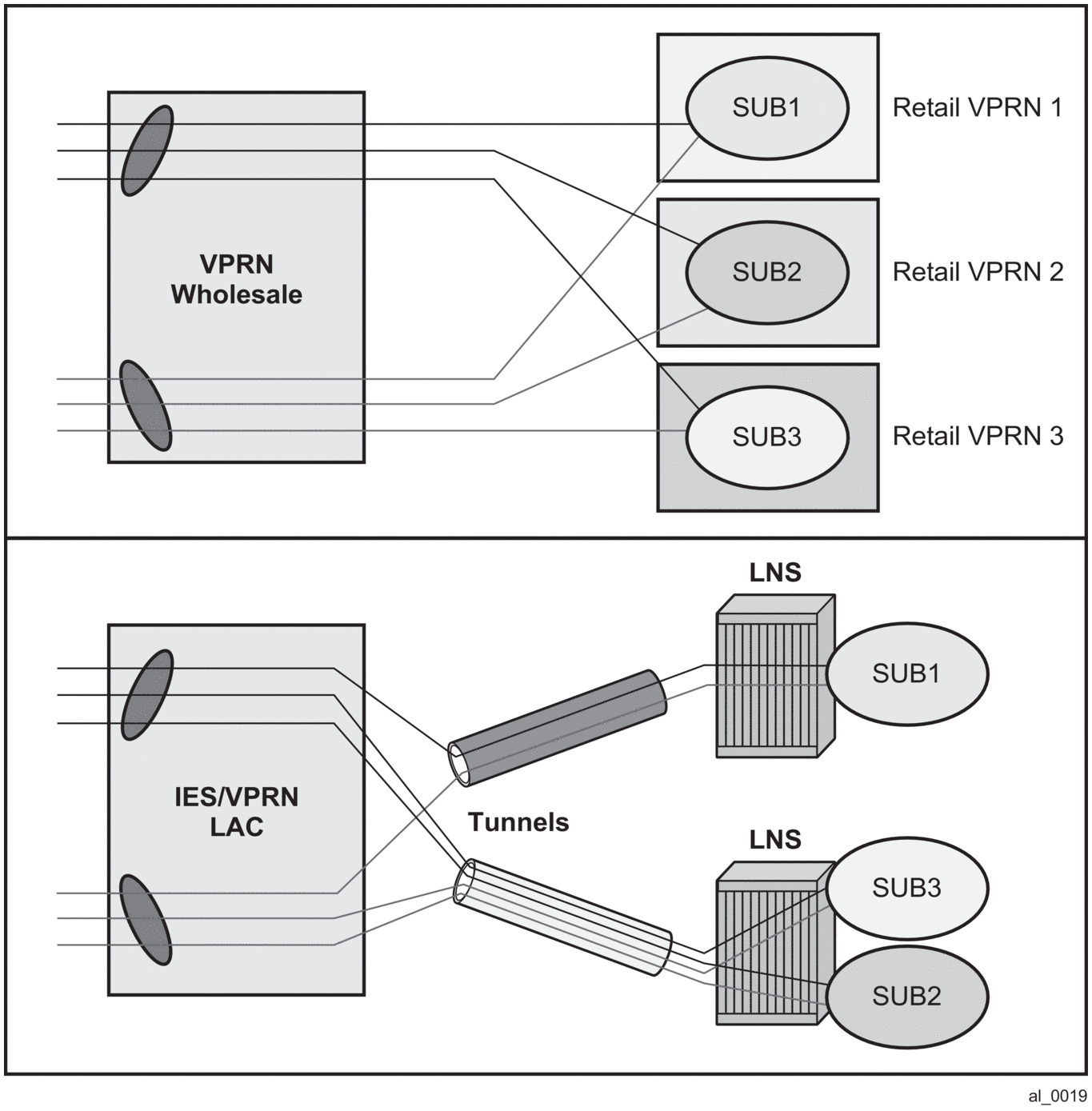 The distinction between these two models is that in the case of LAC/LNS, the replication is performed further up in the network on an LNS node. This means that the traffic between LAC and LNS is multiplied by the amount of replications.